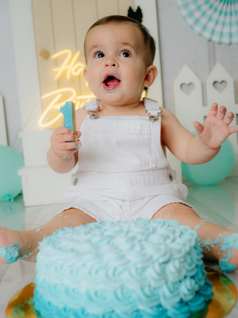 Este el momento estrella para todas las mamás. El recuerdo que no podemos perdernos bajo ningún concepto. Es el momento de una gran fiesta de globos y por supuesto… su primera tarta de cumple!